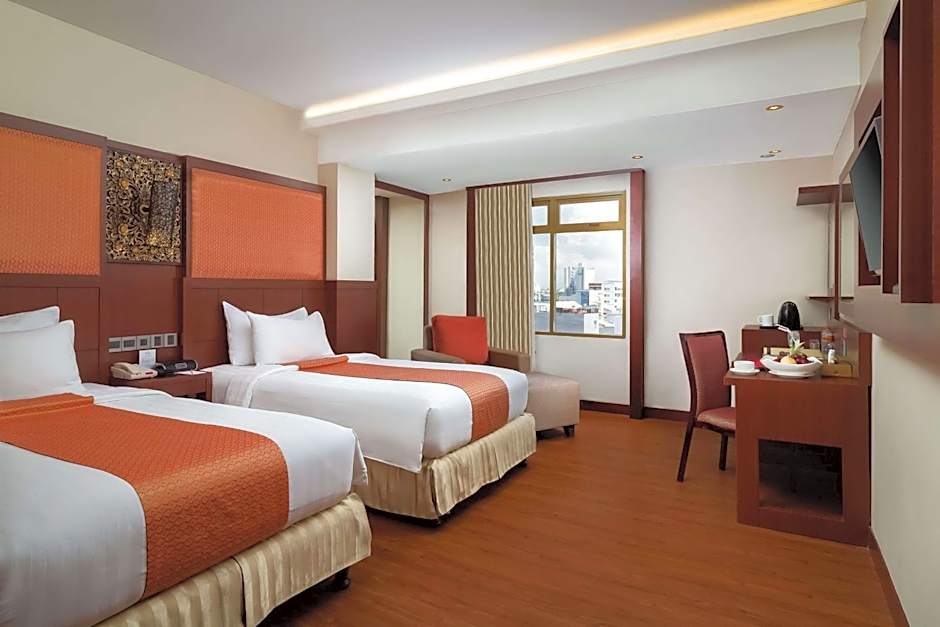 2 Single Beds Non-Smoking Deluxe Room City View Bathtub Mini Bar is 291 square feet and includes 2 single beds 80-130 width.